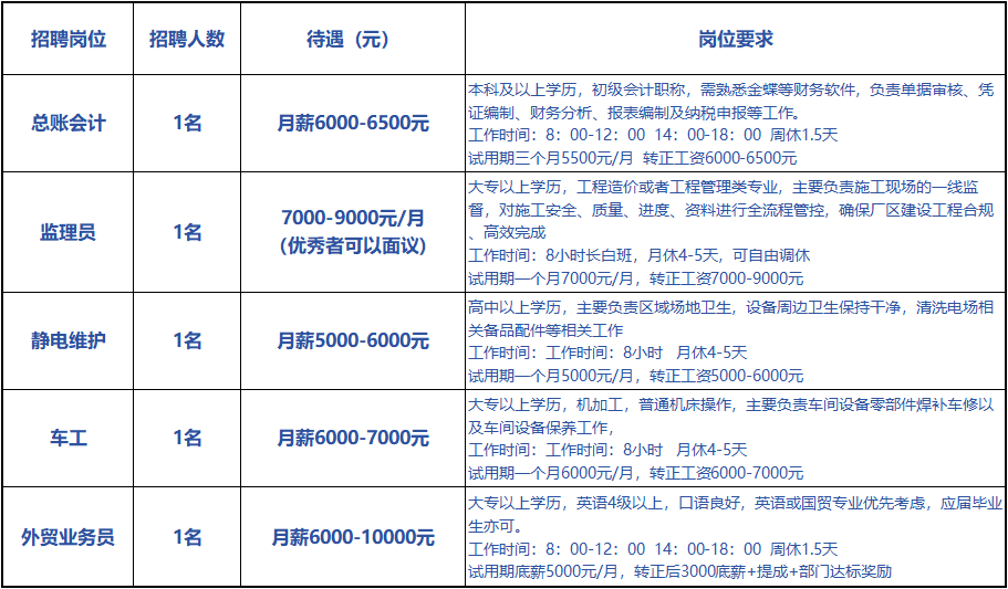 廣東雄星新材料有限公司誠聘